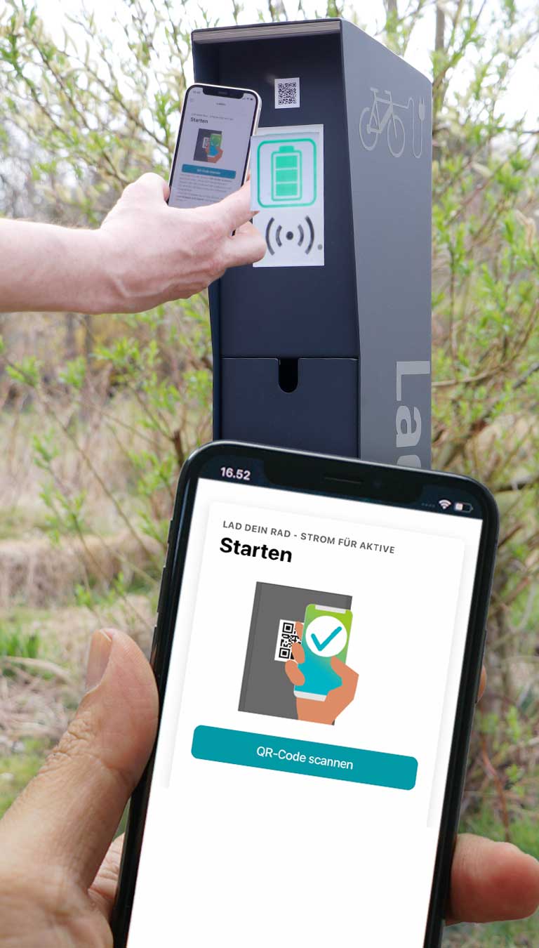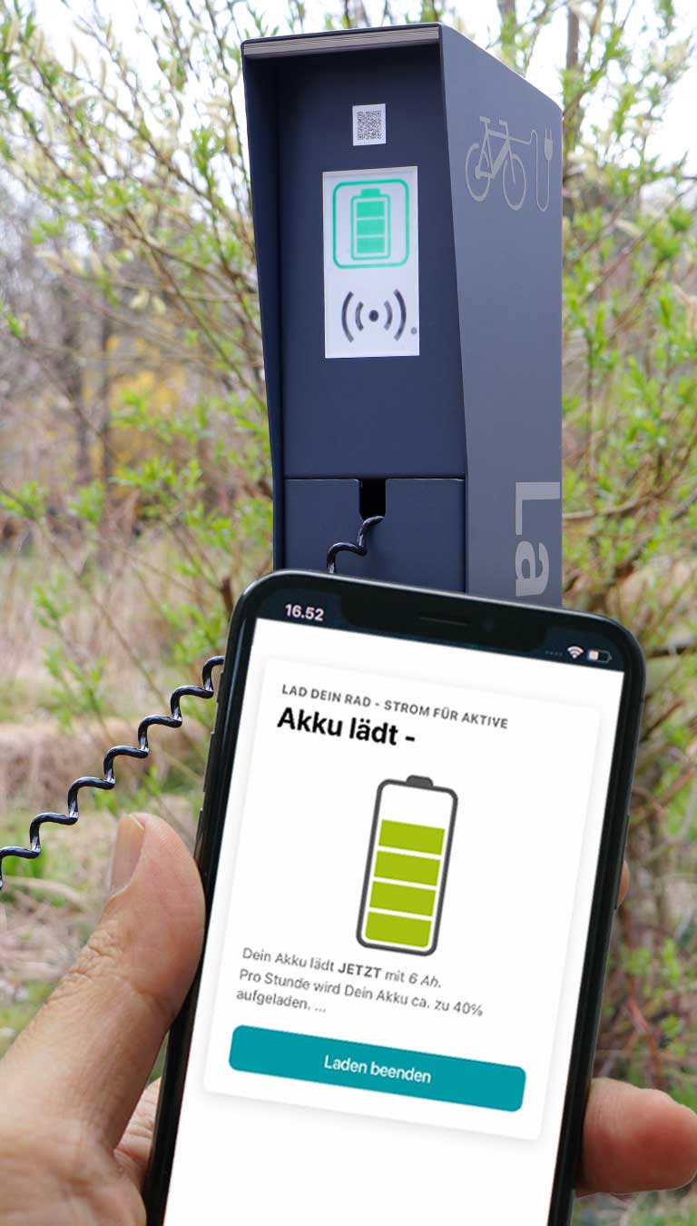 Sie können mit der App alle Ladestationen von Lad dein Rad benutzen.